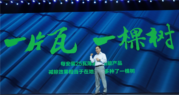 全国工商联副主席、汉能控股集团董事局主席李河君在题为《一片瓦•一棵树》的演讲中表示:“汉能一直围绕住、行两大领域,进行重点产品布局,让建筑的屋顶、墙面都装上薄膜太阳能,一直是我们的目标。今天发布的汉瓦无疑是一次全新的突破,一次颠覆。每安装25瓦薄膜太阳能产品,所达成的减排效果,就相当于在地球上多种了一棵树。汉能一片曲面瓦的功率是30瓦,安装一片汉瓦,就多种了一棵树。瓦片虽小,但它的环保价值非常大,所有的参与者都是在造福社会。”